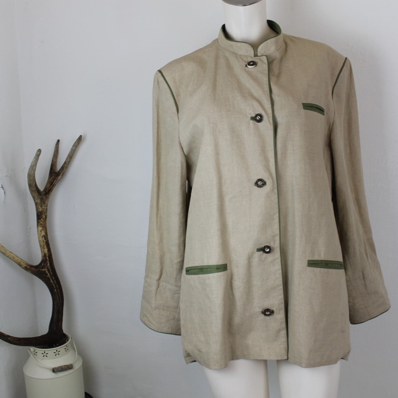 Besonderheiten bzw. nähere Beschreibung: 100% Leinen, kleine Flecken lt. Foto, Reinigung empfohlen, zahlt sich bei diese Jacke betimmt aus